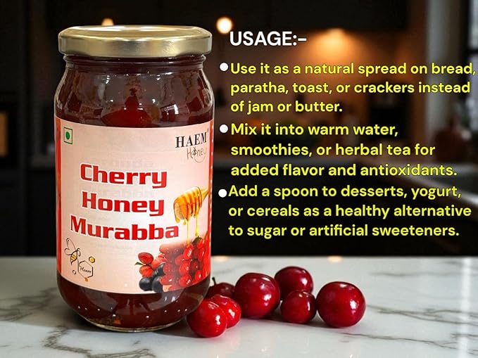 Haem Honey Cherry Honey Murabba | Natural Fruit Preserve with Real Cherries & Pure Honey | Unprocessed, Bamboo Honey Murabba, Healthy Sweetener & Spread – 500gm