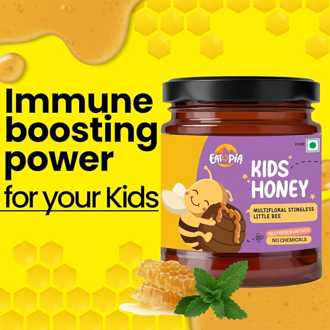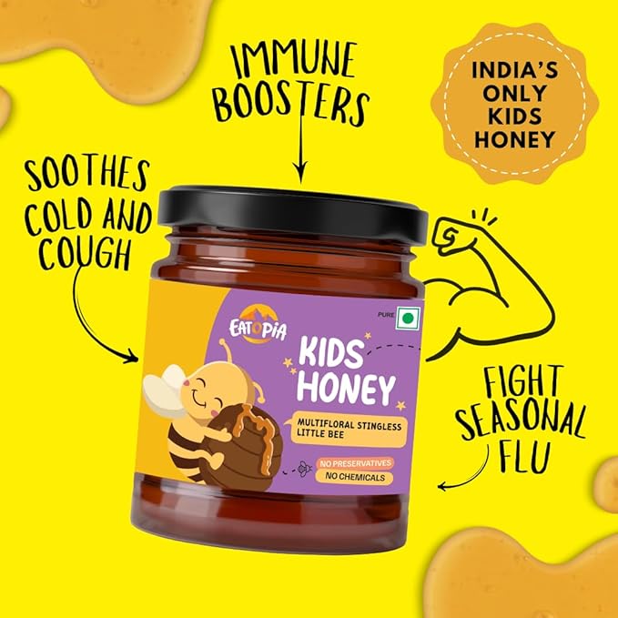 Eatopia Little Stingless Bees Honey 250gm | 100% Pure & Natural Honey | Natural Ayurvedic Immunity Booster | Helps in Curing Cough & Cold | Pure Honey with No Added Sugar | Sidr & Sullia Wild Flower Honey