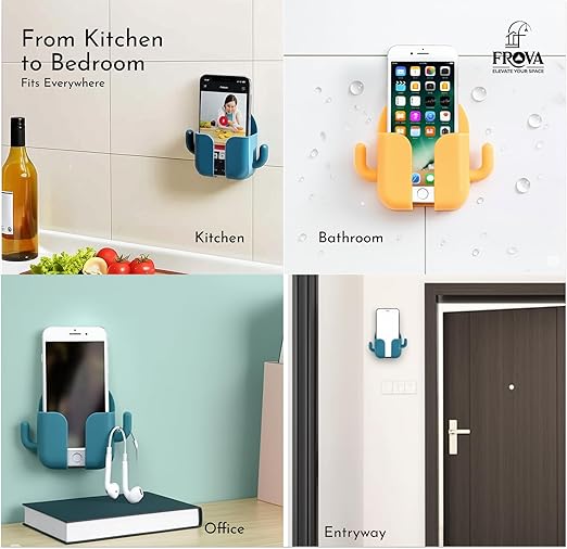 Mobile Holder for Home – Self-Adhesive Mobile Stand for Wall with Dual Hooks, Multipurpose Remote Holder Wall Mount for Phone, AC Remote & Earphones – Durable ABS Build, Pack of 4 (Random Color)