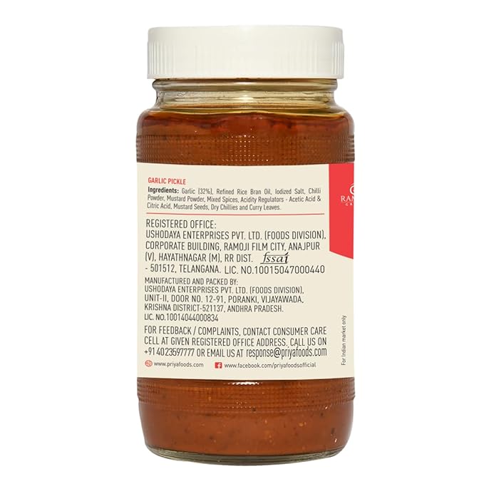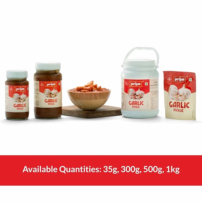 Priya Garlic Pickle, 500g - Authentic Telugu Style Achar | Traditional South Indian Taste | Homemade Lahsun Achar | Tangy and Spicy| With Garlic Pieces and Mixed Spices| Glass Jar