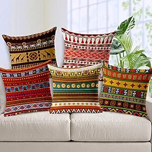 AEROHAVEN Set Of 5 Decorative Hand Made Jute Throw or Pillow Cushion Covers