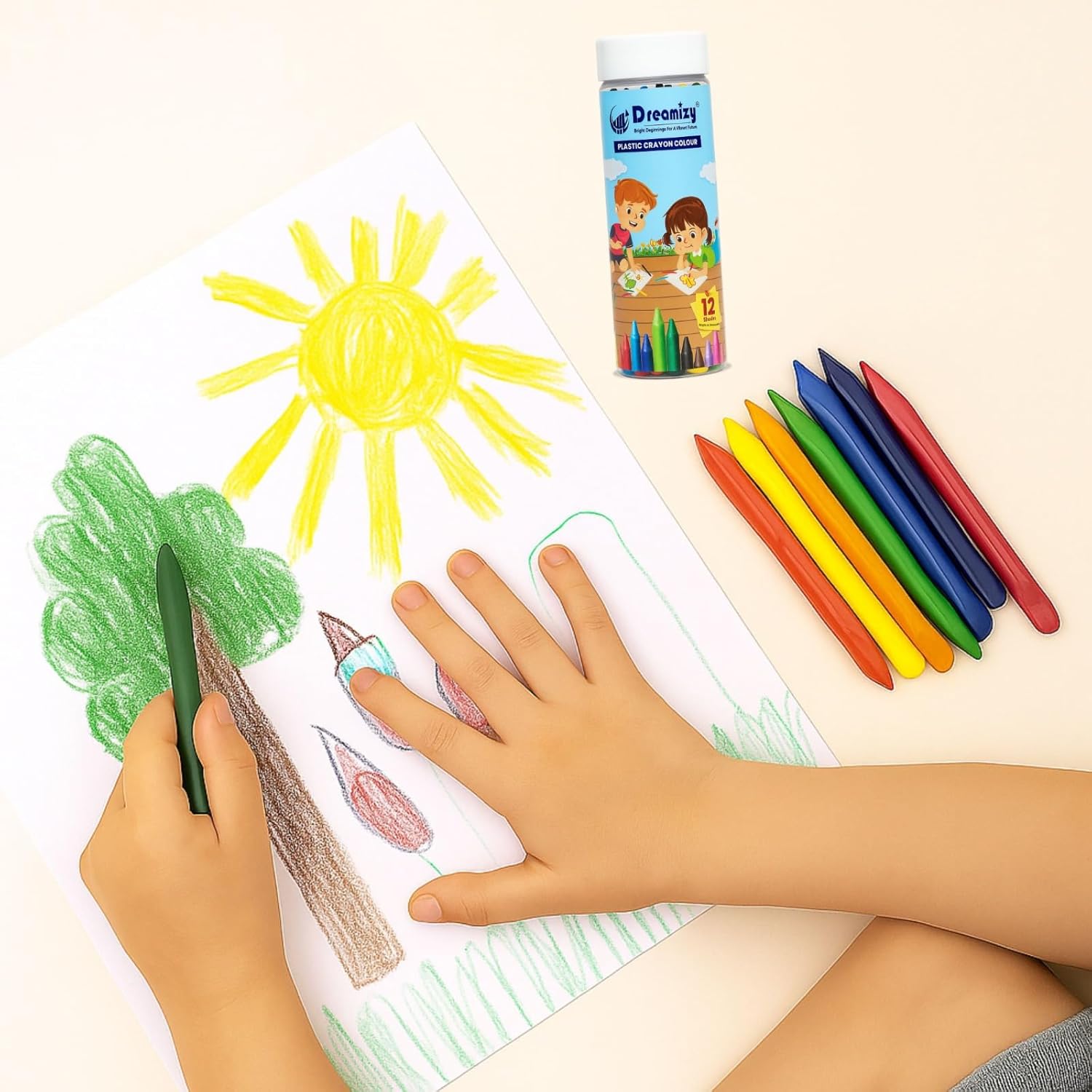 Non-Toxic Plastic Crayons, 12 Shades, Multicolour, Washable