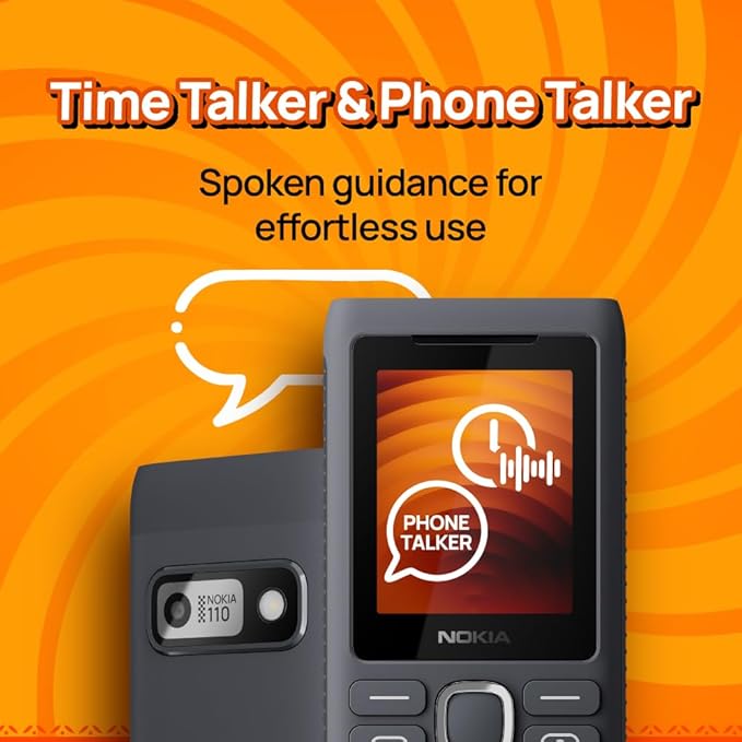 Nokia 110 Power Keypad Phone |Dual SIM, Camera, Long Lasting Battery, Durable Design, Phone Talker, Wireless FM Radio, MP3 Player, MicroSD, 1-Year Replacement Guarantee | Grey