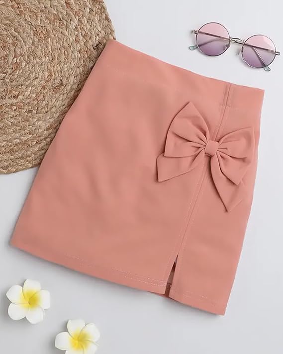 High Rise Elastic Waist with Lace Cotton Blend Solid Regular Fit Knee-Length Girls Pencil Fit