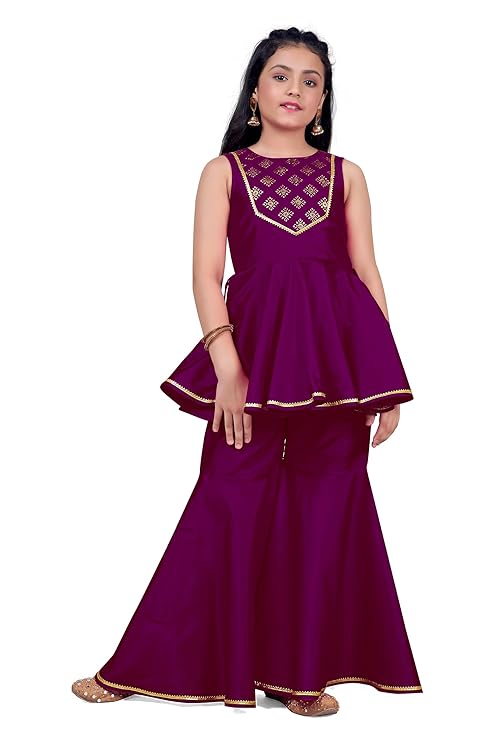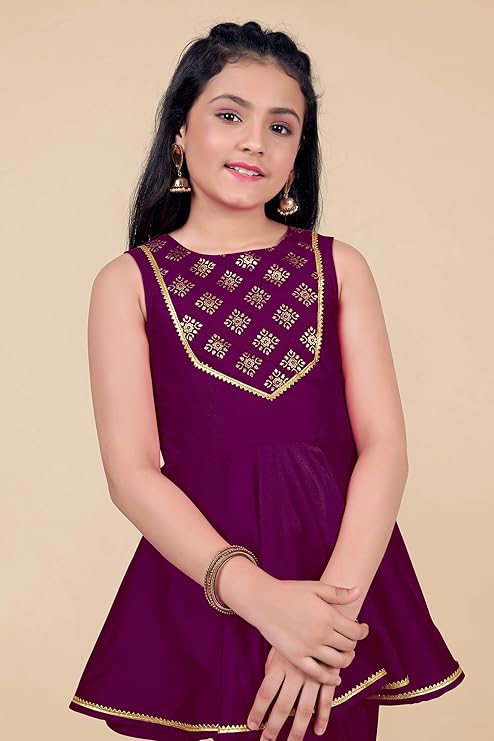 Fashion Dream Girls Cotton Blend Printed Salwar Suit Set|Kids Kurta & Dhoti|Ethnic Wear|Sharara Set