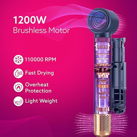 AGARO Imperial Multifunctional 6-in-1 Hair Styler, Brushless 1200W Motor, High Speed Ionic Hair Dryer, Blow Dryer Brush, Detachable Hair Styling Tools, Volumizing, Drying, Smoothing, Men & women, Blue