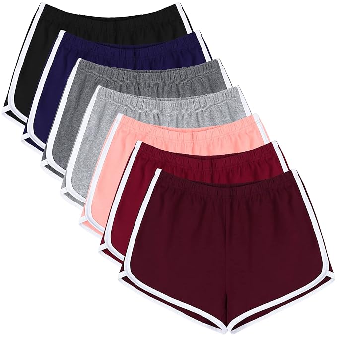 URATOT 7 Pack Cotton Sports Shorts Summer Yoga Dance Pants Breathable Workout Running Shorts Dolphin Shorts for Women