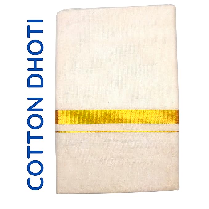 4.00 MTRS Hand Wash 60s Count Cotton Dhoti Tradional Wear Dhoti Gold Zari Dhoti