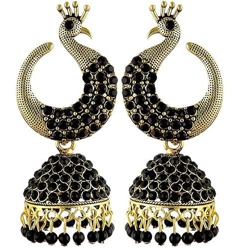 Fashion Frill Golden Earrings For Women Peacock Designs Cubic Zirconia & Pearl Gold Plated Earrings Jhumka