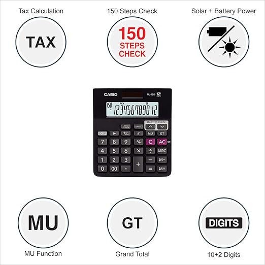 Casio MJ-12D 150 Steps Check and Correct Desktop Financial Calculator, Black