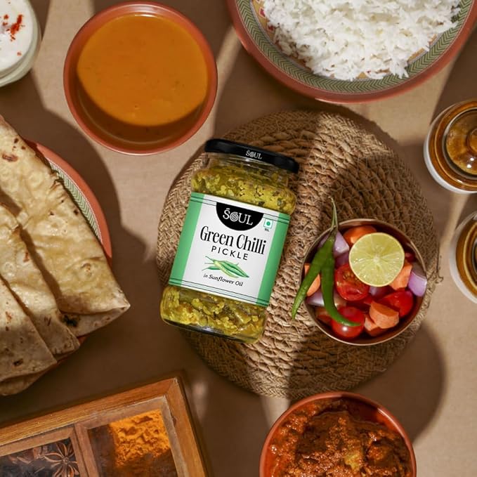 Soul Green Chilli Pickle 375g - Handcrafted Gourmet Zest in Sunflower Oil