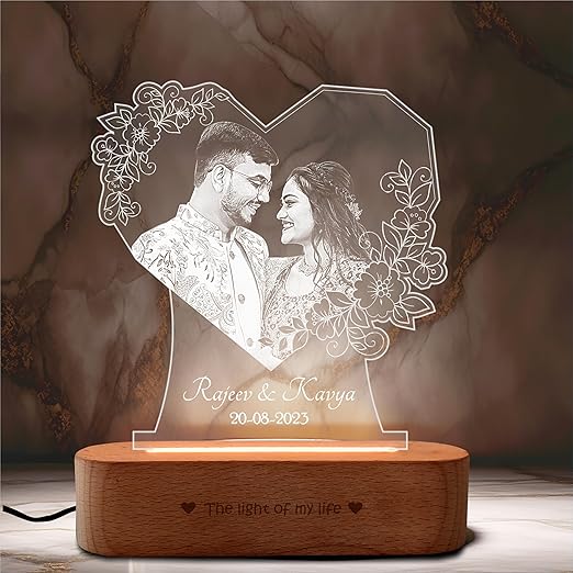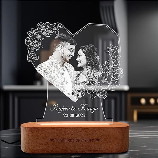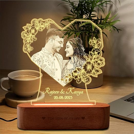 ZOCI VOCI Personalized Valentine Gift for Couple - LED Photo Frame | Customized Anniversary Gift for Wife & Husband | Photo Engraved Lamp (Radiant Love, Warm Light)