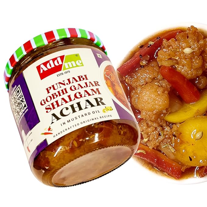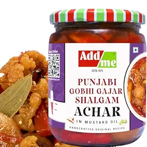 Add Me Gobhi gajar Shalgam Pickle 600g | Homemade Fresh Mixed Pickle of Cauliflower, Carrot & Turnip with Garlic and Onion | Mixed Pickles in Mustard Oil Vintage Recipe