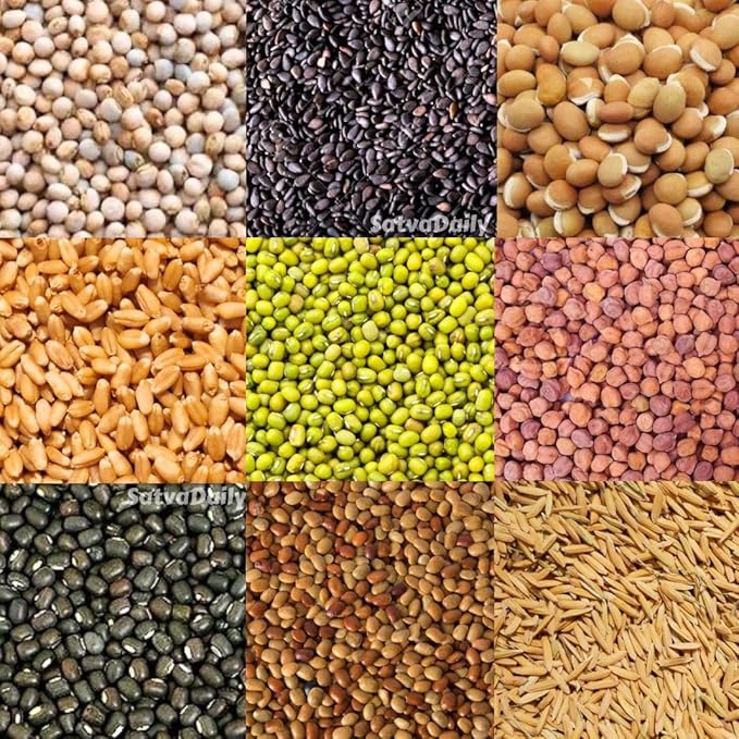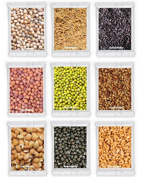 SatvaDaily Navadhanyam Set | Navadhanya 9 Grain Set for Pooja (450g - 50g each), Homam & Navagraha Puja | Traditional Vastu Pooja Samagri | Navagraha Homa Set | 9 Grains Kit Navadhanyalu for Homam, Rituals & Temple Use