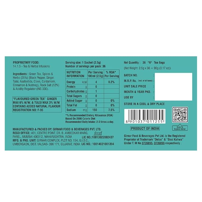 Girnar Food & Beverages Pvt. Ltd. Detox Green Tea - Desi Kahwa