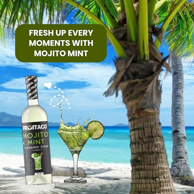 Fruitaco Mojito Mint Syrup | Mixer for Mocktails, Cocktails, Drinks, Juices, Beverages | Non Alcoholic Mix (Pack of 1-750 Ml, 750, millilitre)