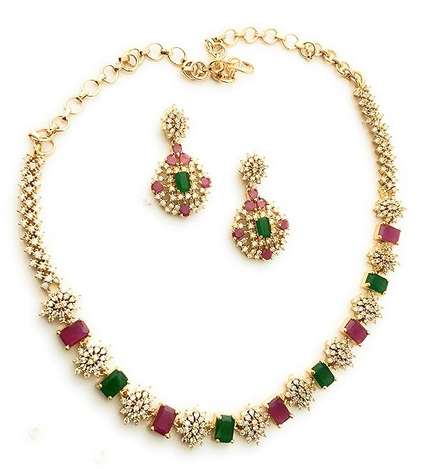 Sasitrends Traditional Micro Gold Plated Multi Color AD American Diamond Jewellery Necklace Jewellery Set