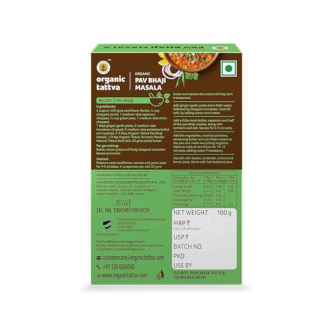 Organic Tattva, Organic Pav Bhaji Masala Powder -100 Gram | NO Artificial Additives and NO Preservatives