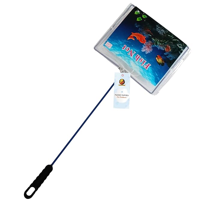 Foodie Puppies Fish Net Cleaner for Aquarium/Fish Tank - (8inch, Pack of 1) | Nylon Net Safe for All Aquarium, White Net with Blue Handle Quick Catch Mesh