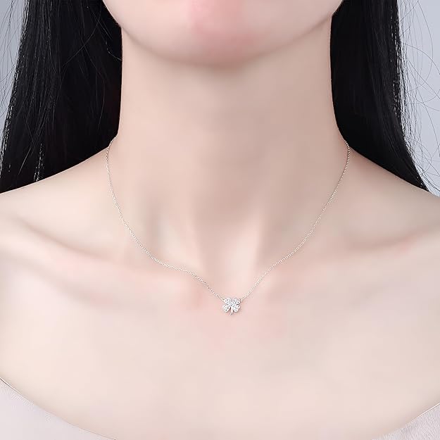 Four-Leaf Clover Pendant Necklace for Women & Girls | Dainty Zircon Inlay Silver-Plated Chain