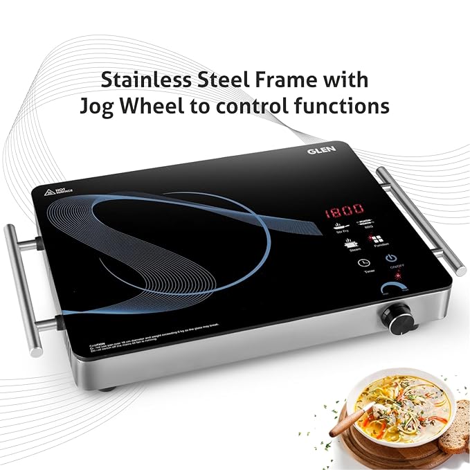 black 2 kg 3 Preset Cooking Modes Crystal Glass Plate Digital Display Touch Control SS Handle Infrared Chulha Hot Plate