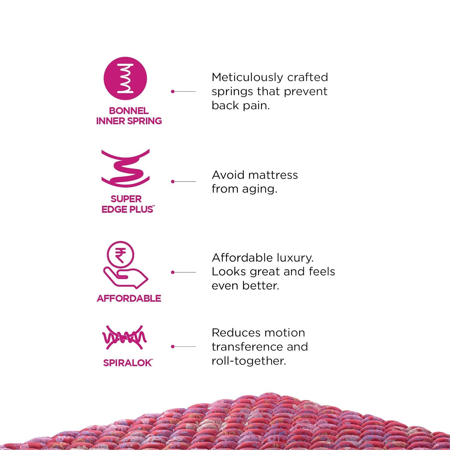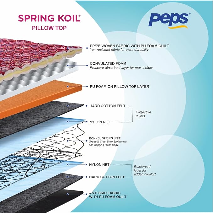 78X60X06 Inches 34 Kilograms maroon Queen Size Bonnell Spring Medium Firm Support Anti-Sag 7-Year Warranty
