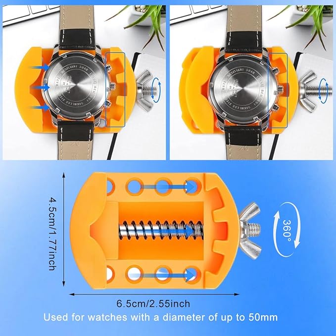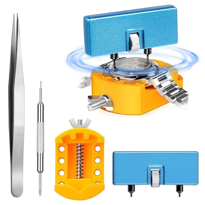 Serplex® Watch Repair Tool Kit with Case Opener, Tweezers, Precision Screwdriver & Case Holder, Watch Back Removal Tool Set with Accessories for Battery Replacement, Only for Grooved Watches