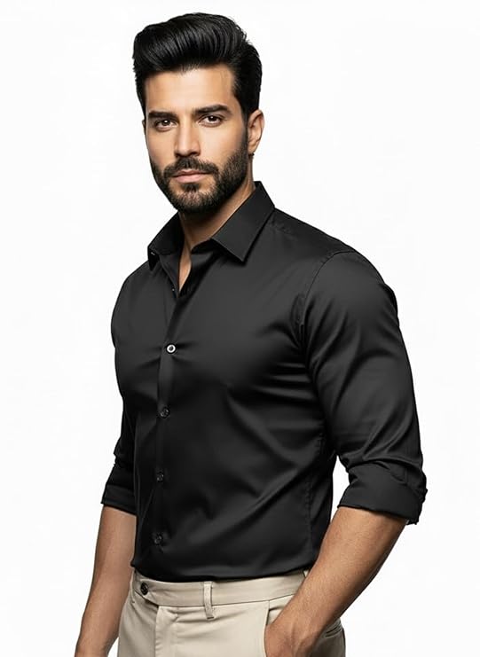DEELMO Men Stylish Solid Satin Casual Shirt for Men Full Sleeves| Poly Satin Silk Shirt