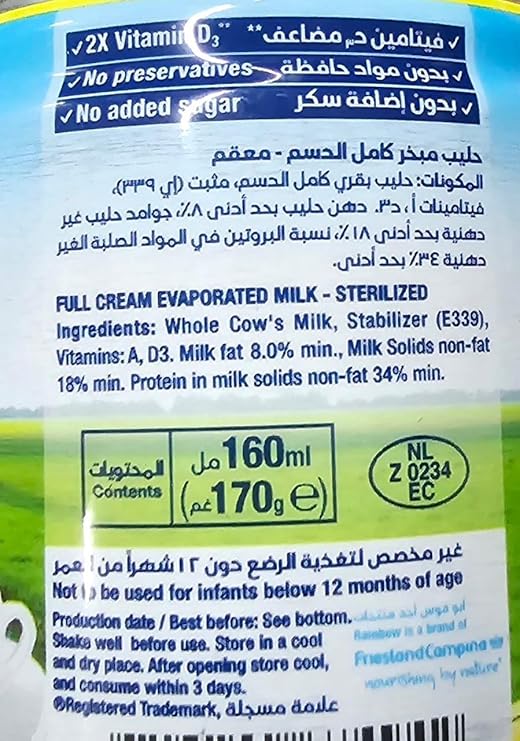 Rainbow Original Evaporated Fresh Milk its Creamy Texture Alone Enriches Flavour 160ml (Pack Of 12)