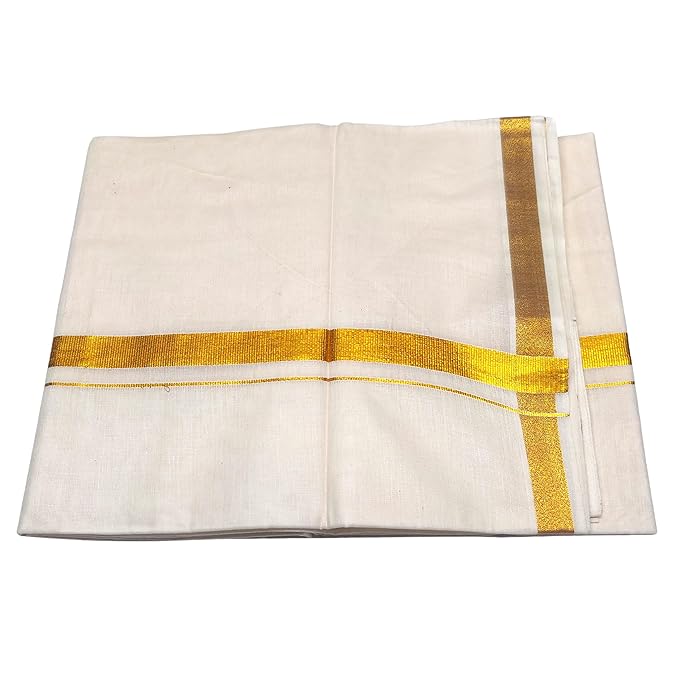 MAT Pure Cotton Mens Fashion Dhoti with Gold Zari - Mens Temple Wear | Devotional Wear 4.00 MTRS