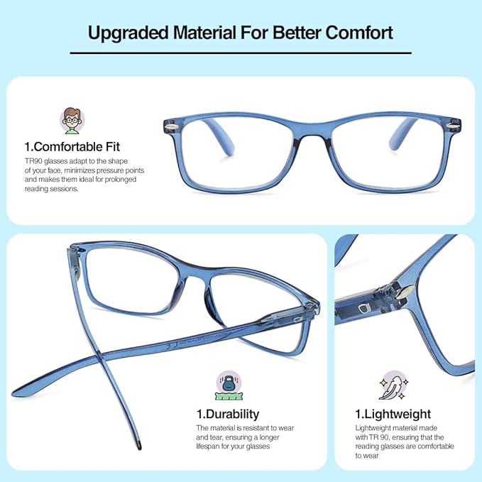 SPECSMAKERS BLUPRO Reading Glasses For Men & Women | Eyeglasses | Spectacles | Full Rim Rectangle Frame Glasses | Blue Shine