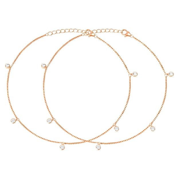 ZAVYA 925 Sterling Silver Rose Gold Plated Anklet Pair for Women