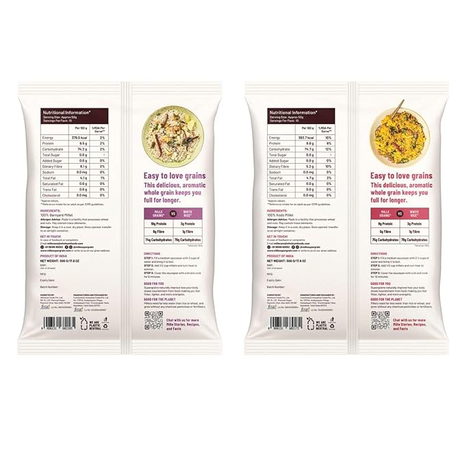 Mille Grains Combo | Foxtail, Little, Kodo and Barnyard Millet | Unpolished, Toasted, No Soaking Required | Ideal for Fasting | Rice Replacement | High Fibre and Plant Protein | Gluten Free | Cooks in 10 minutes, 500 g X 4