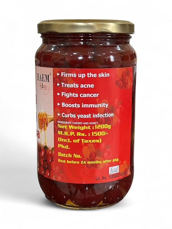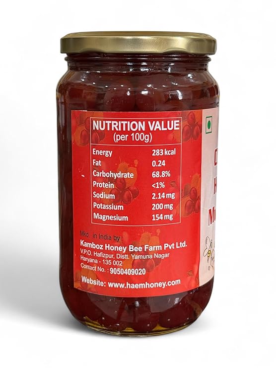 Haem Honey Cherry Honey Murabba | Natural Fruit Preserve with Real Cherries & Pure Honey | Unprocessed, Bamboo Honey Murabba, Healthy Sweetener & Spread – 500gm