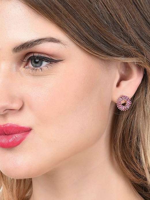 Zaveri Pearls Pink Cubic Zirconia Contemporary Brass Studs Earring For Women