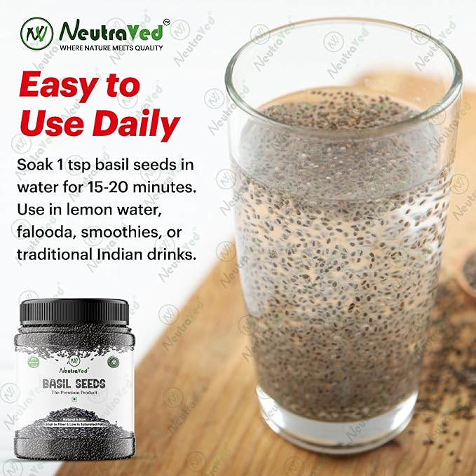 NeutraVed Sabja Seeds for Eating | Basil Seed 500g Jar | Sabja Seed 500gm Natural Superfood use for Seeds Mix & Dry Fruits Mix