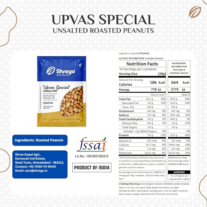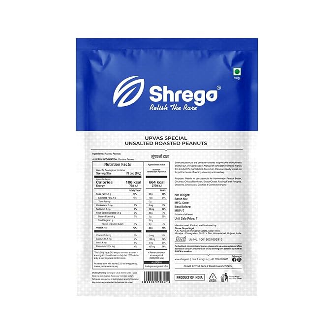 Item Weight 360 Grams Flavour Unsalted Brand SHREGO Allergen Information Peanuts Item Weight 360 Grams Item Form Peanut