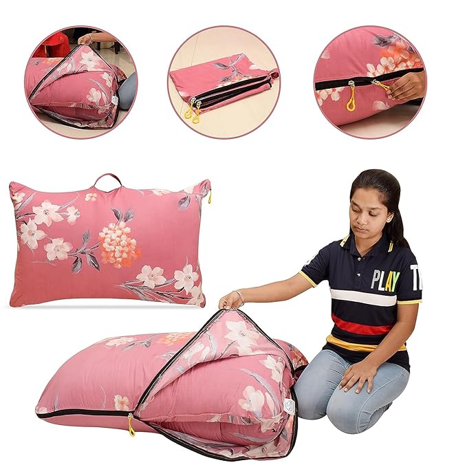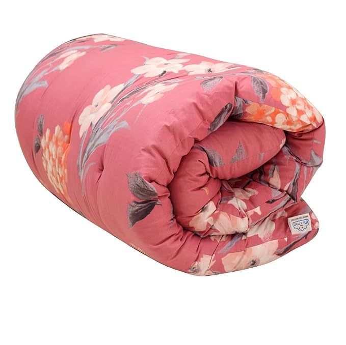 pink 8 Kilograms Lightweight Guest and Bachelor Tufted Ruyi Gadi with 2 Pillow and Zipper Cover Travel Cotton Blend