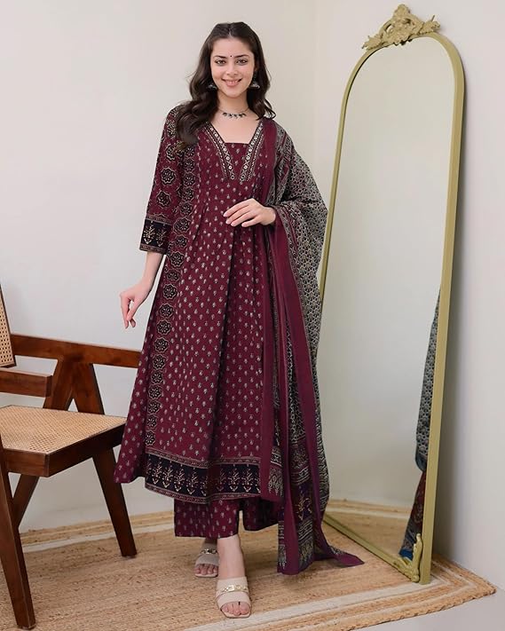 Ajrakh Print Kurta Palazzo Dupatta Set