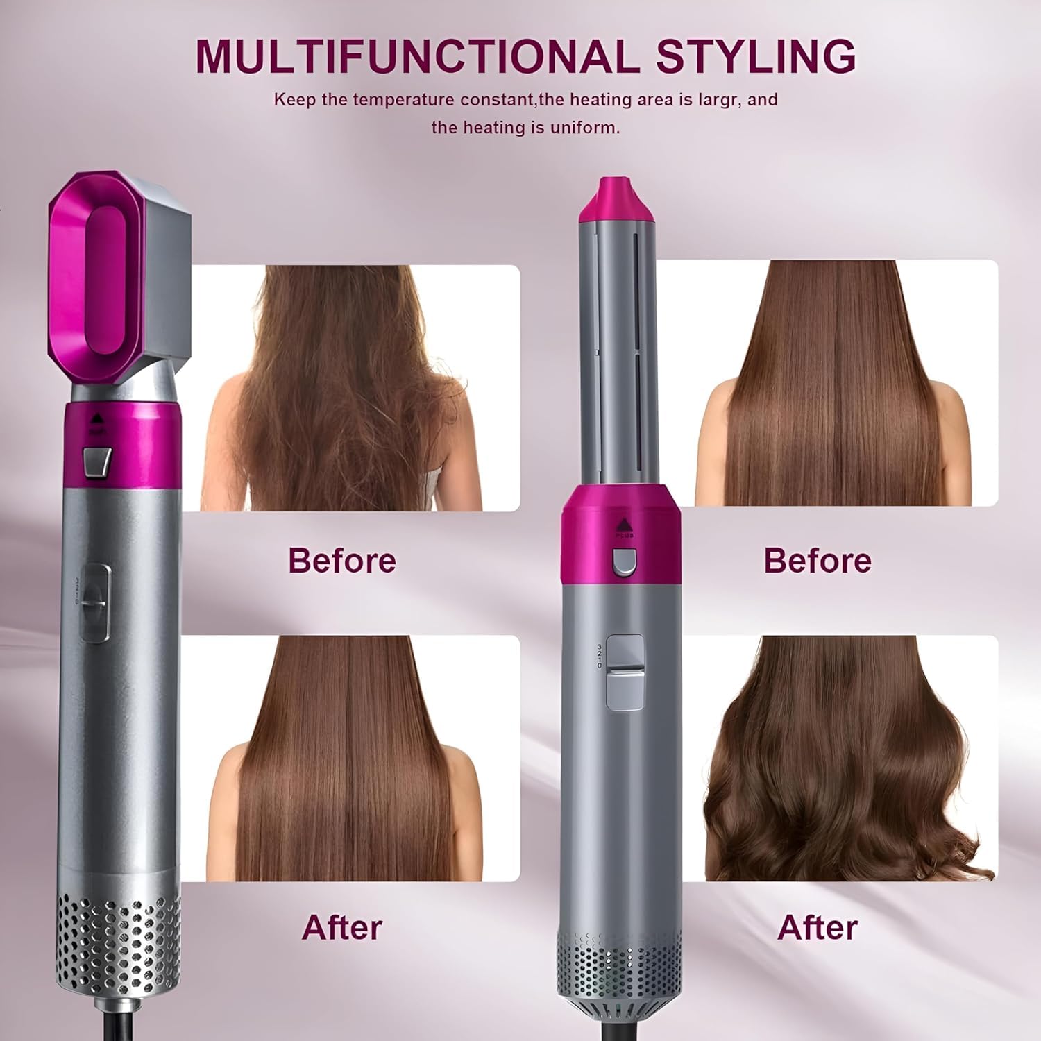 240 Watts 5 in 1 Hot Air Brush 1000W Hair Dryer & Volumizer for Women | Detachable Styler with Straightener, Curler, Crimper & Rotating Comb | Frizz-Free Ionic Tech, 3 Heat Settings, Salon-Quality Styling